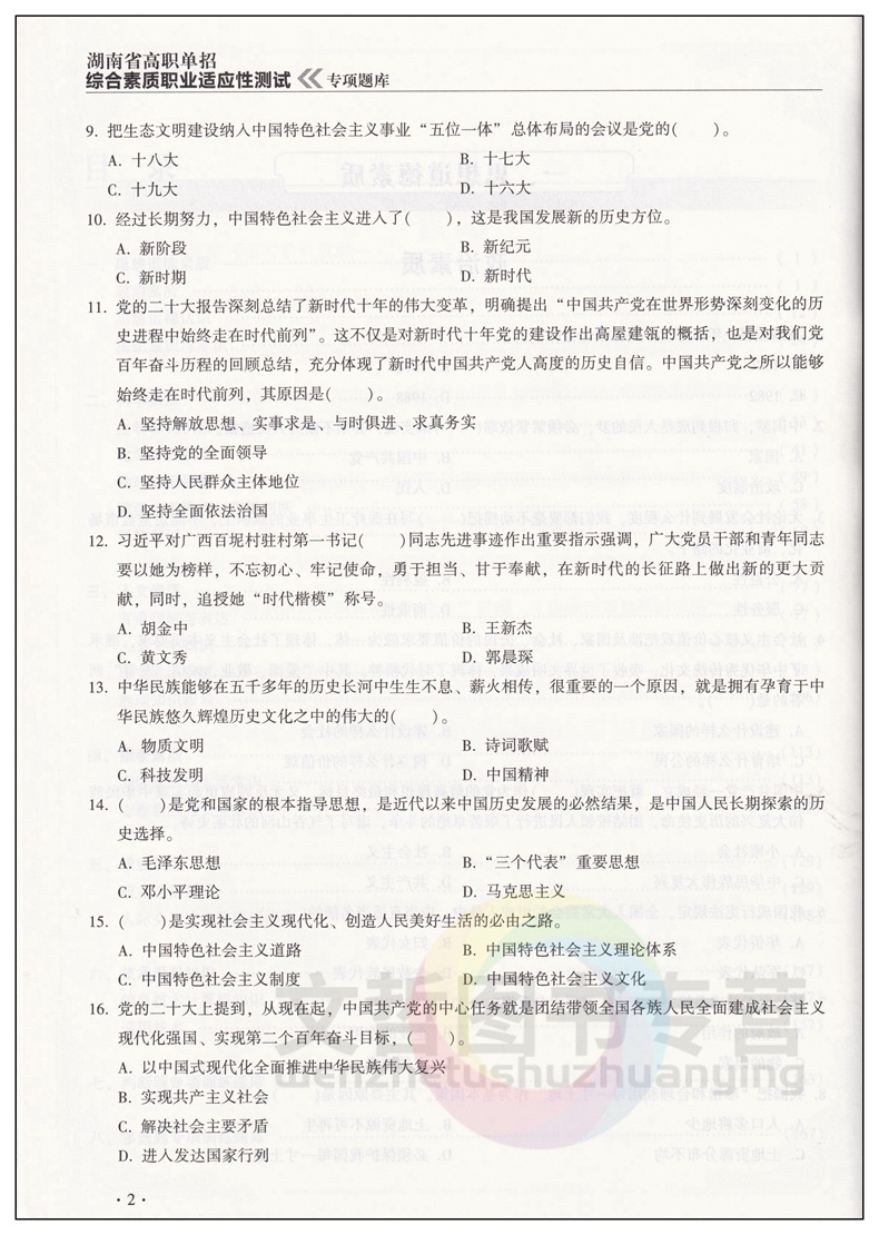 2025湖南省高职单招综合素质职业适应性测试专项题库 职高中等职业学校对口升学考试高职对口招生综合素质职业技能考试必刷题