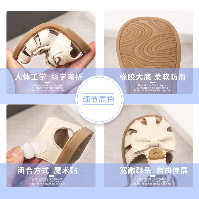 子小女孩软底公主鞋 女宝宝凉鞋 女童蝴蝶结鞋 新款 可爱小熊2025夏季