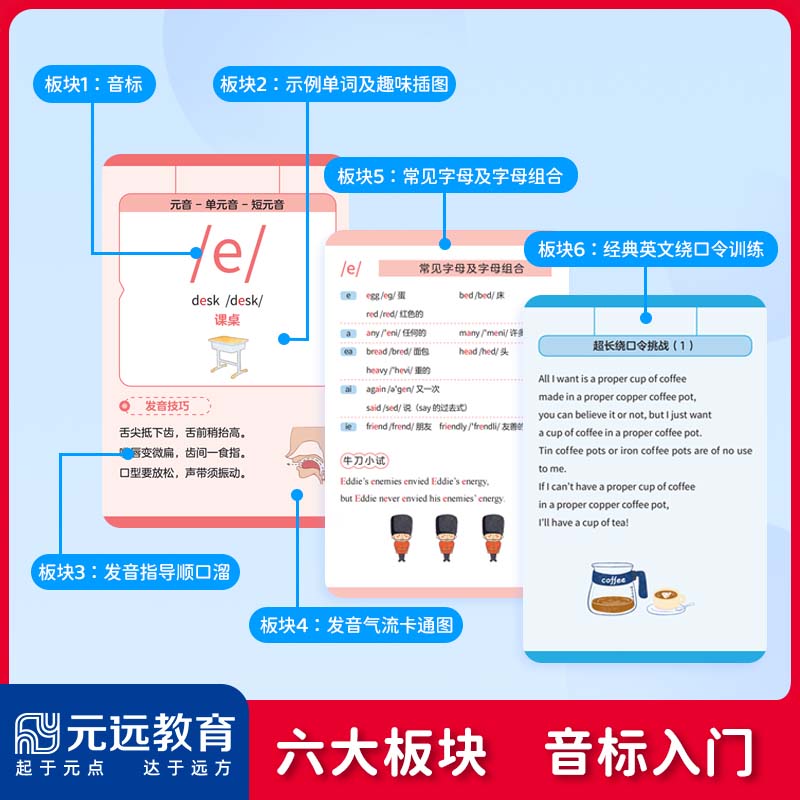 赠免费音频 常见字母及字母组合 48个国际音标 趣味英文绕口令 口语发音技巧 发音气流图 小学英语国际音标卡