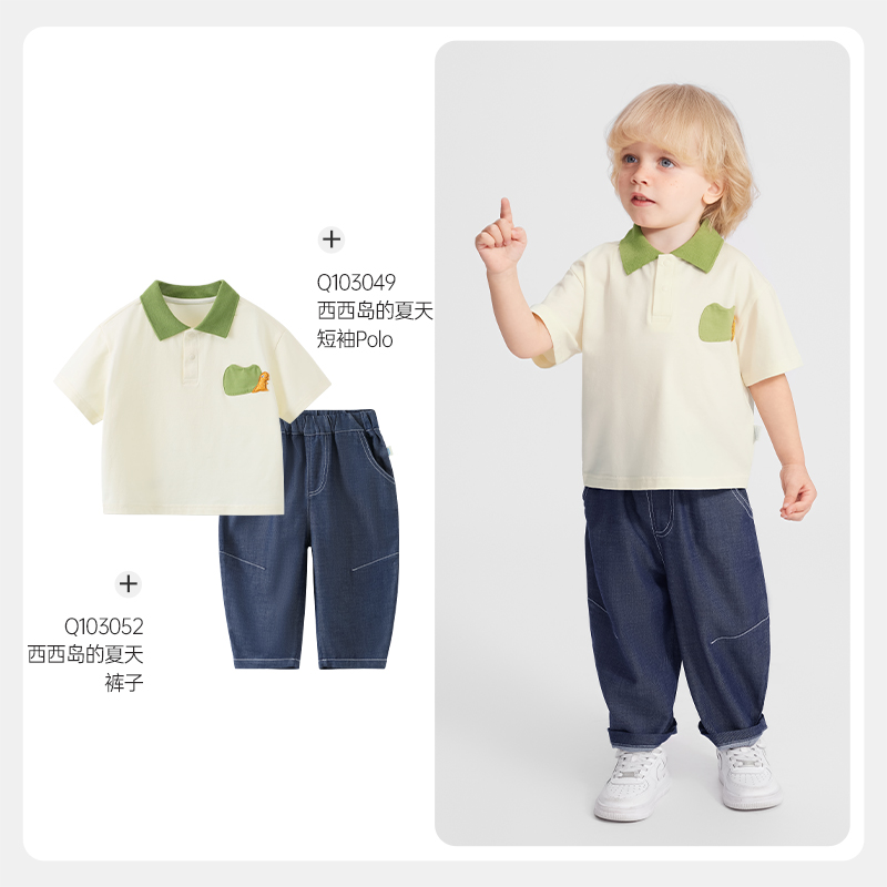 宝宝2025新款 子夏季 齐齐熊男童裤 儿童 莱赛尔防褪色九分软牛仔裤