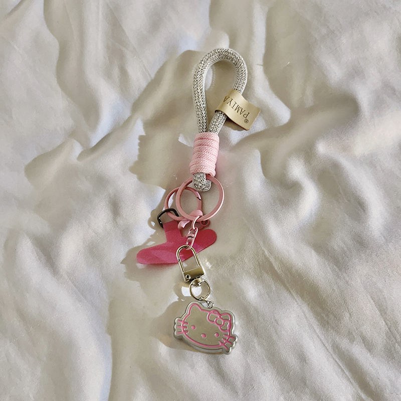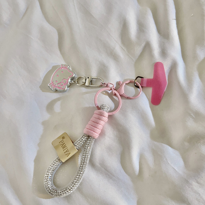 超萌可爱ins立体银色KT猫挂件编织短款 手绳适用于手机壳百搭趣味网红少女心配饰ccd汽车钥匙扣耳机套便携挂件