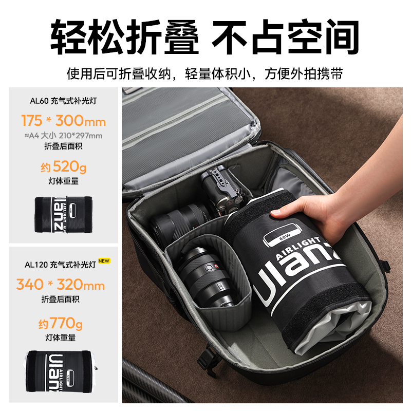 Ulanzi优篮子AL120大白双色温气柱灯自动充气式 补光灯户外直播拍摄便捷可折叠摄影灯人像摄影打光拍照柔光灯
