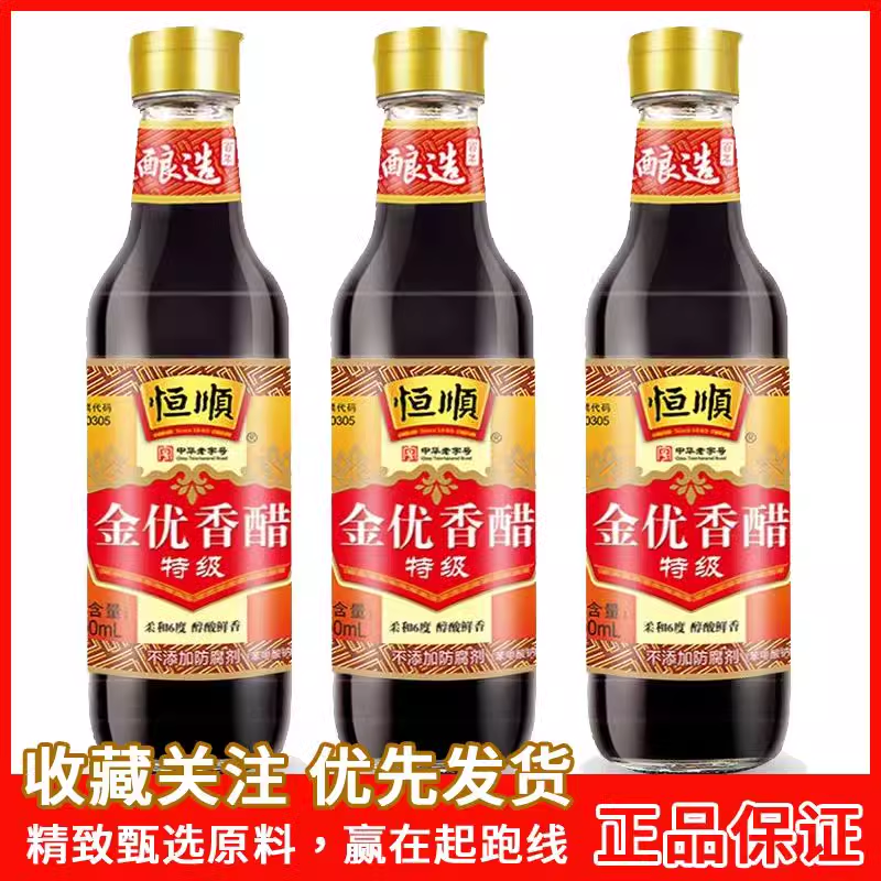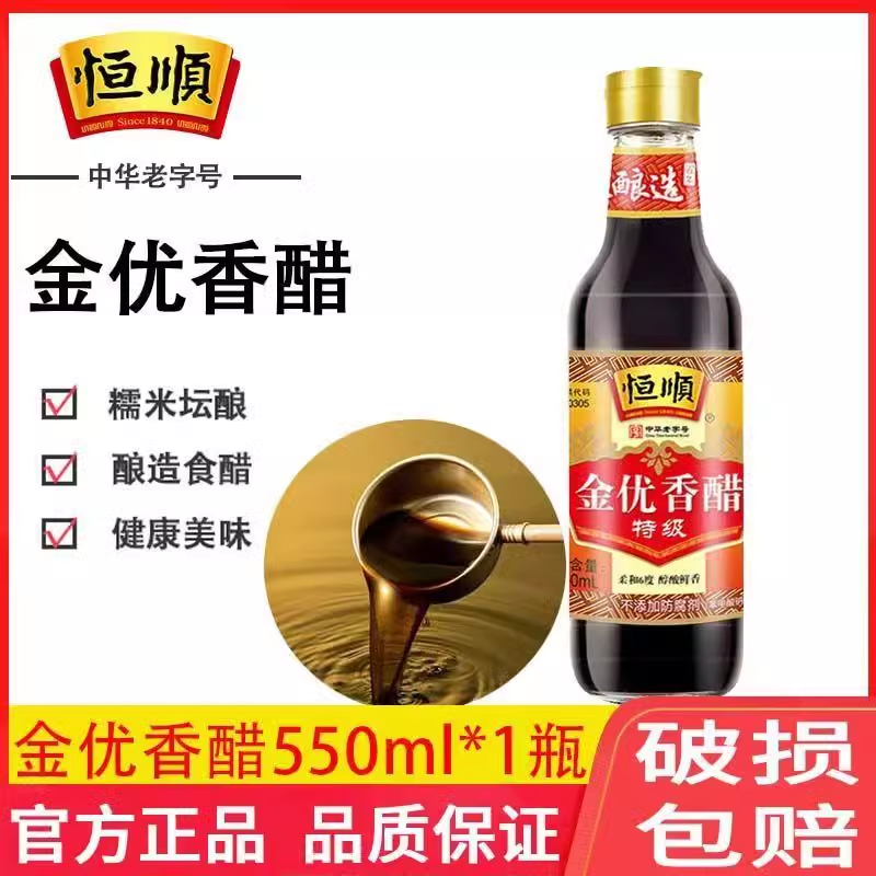 镇江恒顺金优香醋特级550ml固态发酵酿造食醋点蘸料炒菜零添加