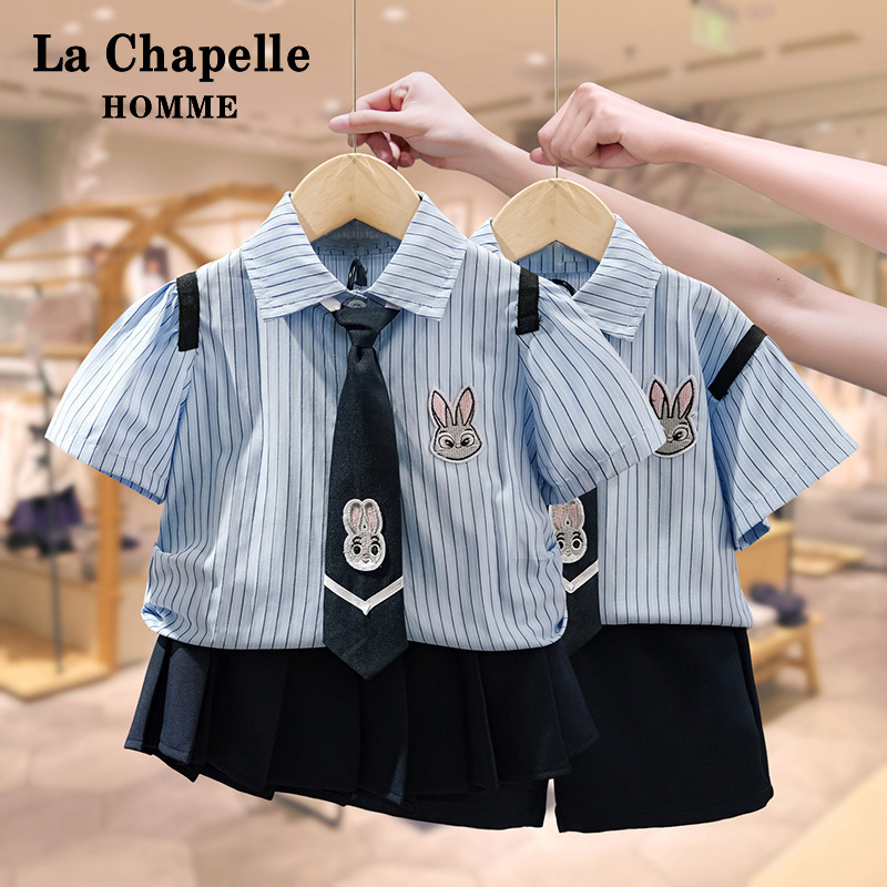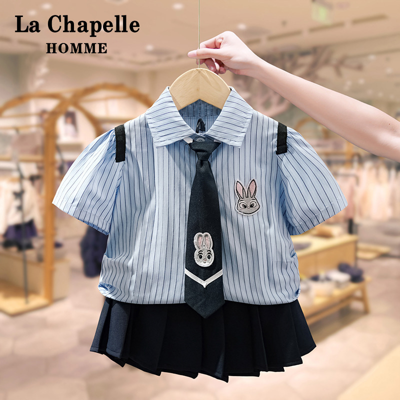 男童夏季 新款 短袖 套装 儿童宝宝兔子警官女童裙子 衬衫 拉夏贝尔童装