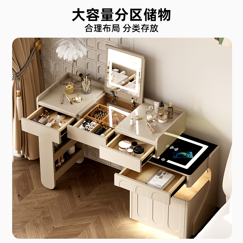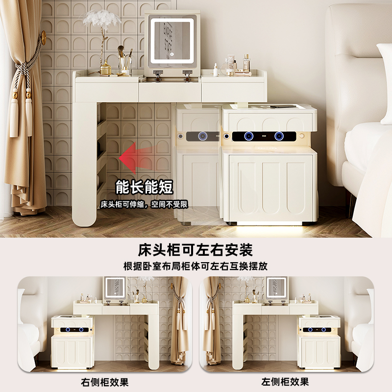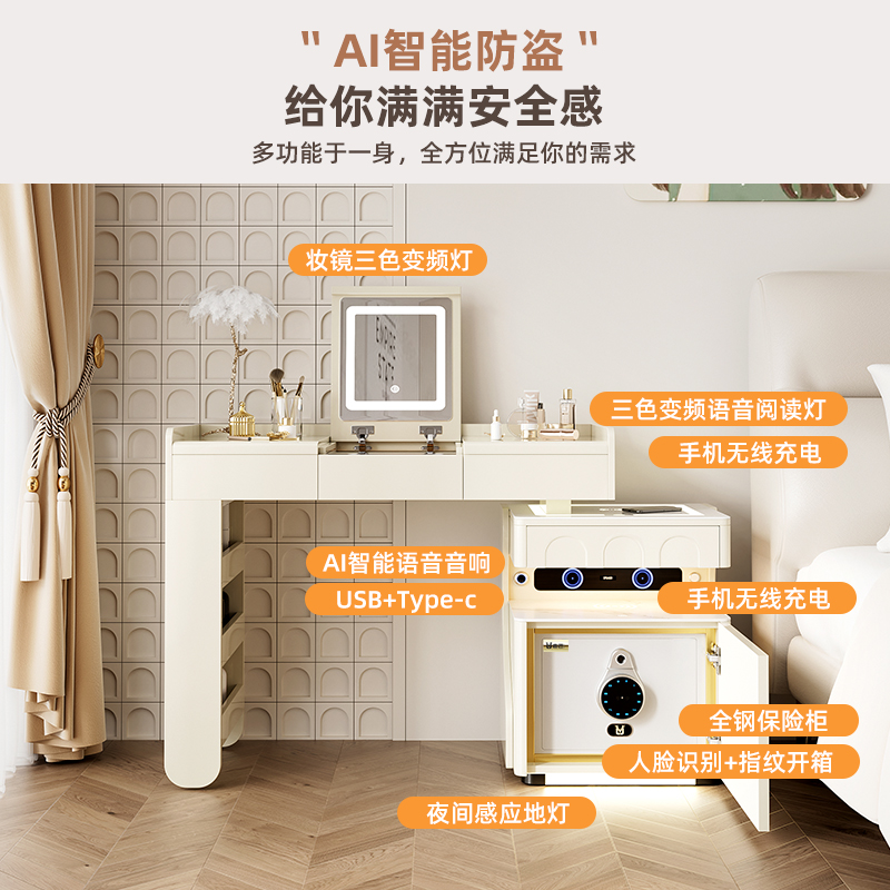 鹿匠保险柜化妆柜一体家用床头柜防盗保险箱指纹密码 首饰梳妆台保管箱 箱小户型卧室带智能化妆镜隐藏式