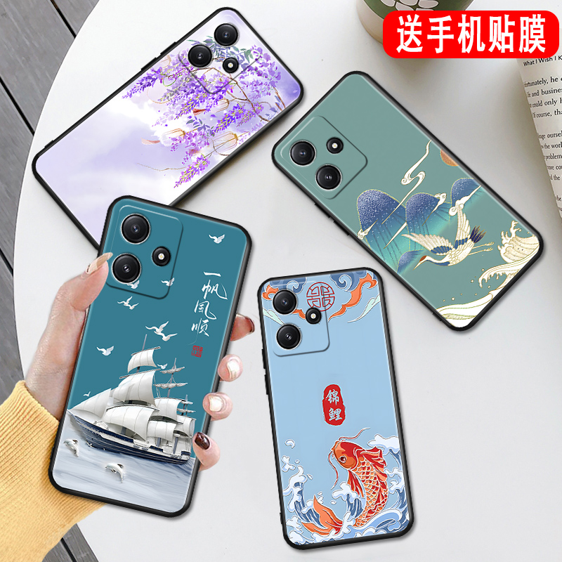 防摔保护套23077rabdc文艺小清新彩绘red 5g新款 秋昊适用于红米12 5G镜头全包手机壳23077rabdc国潮风redmi12