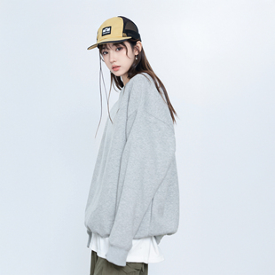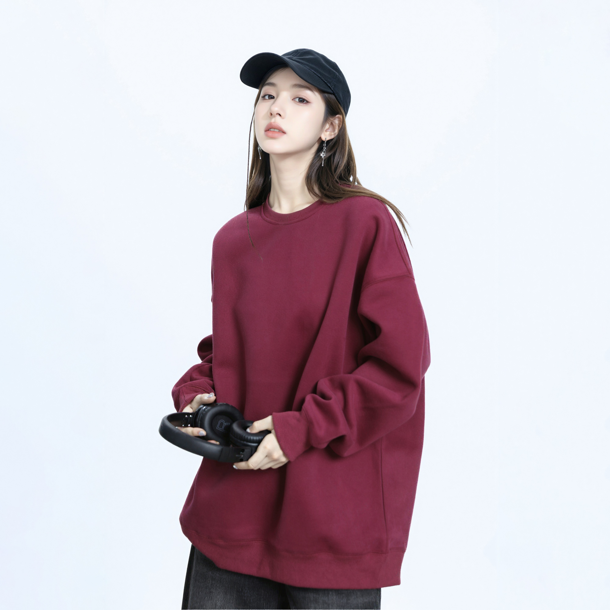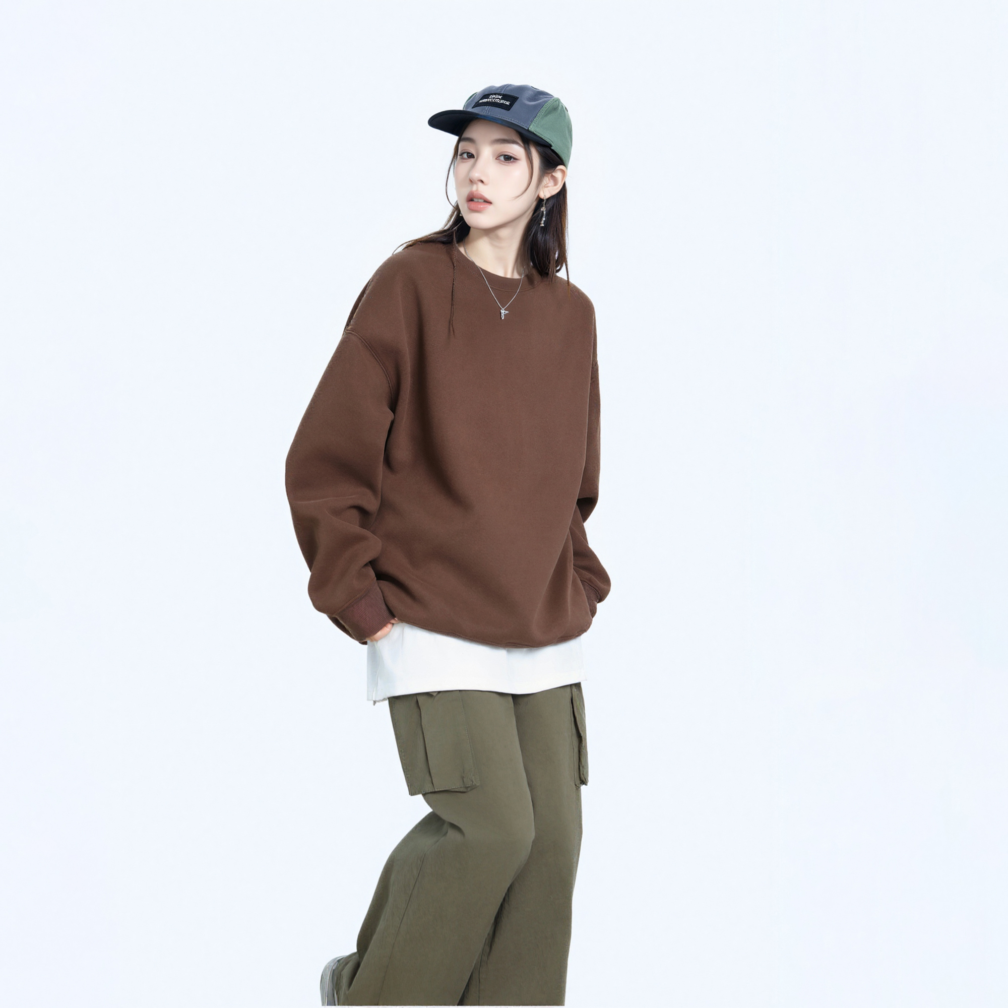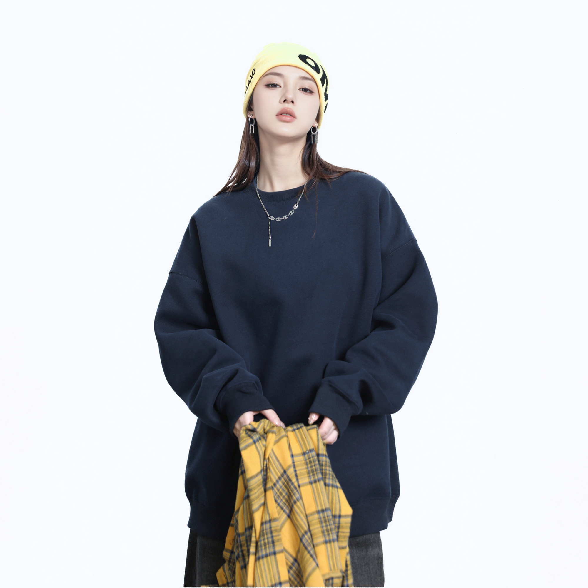 无帽上衣 潮牌宽松情侣装 美式 复古纯色圆领套头卫衣女春秋2025新款