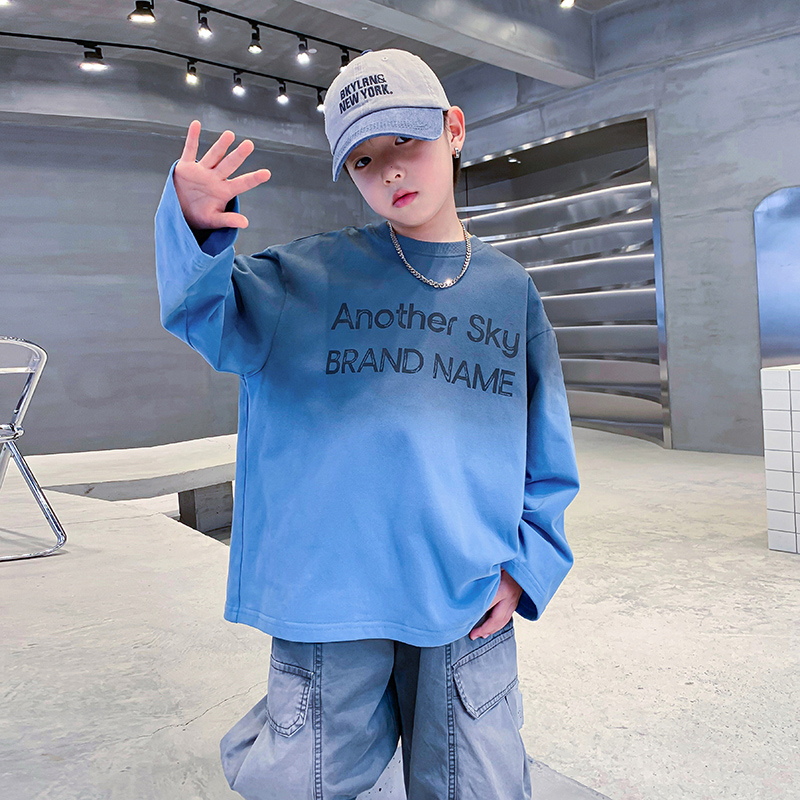 印花插肩袖 儿童中大童美式 潮 T恤纯棉2025春秋新款 多多家男童长袖