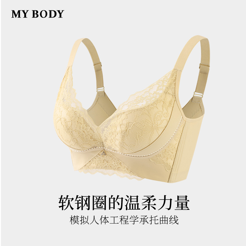 商场同款 MYBODY内衣女精致蕾丝小胸聚拢显大软钢圈厚杯调整型文胸