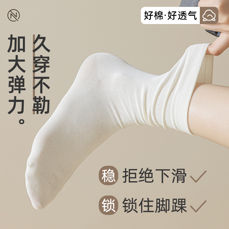 纯棉中筒袜配裙子春秋无骨堆堆袜子女款 薄款 夏季 黑色袜子配小皮鞋