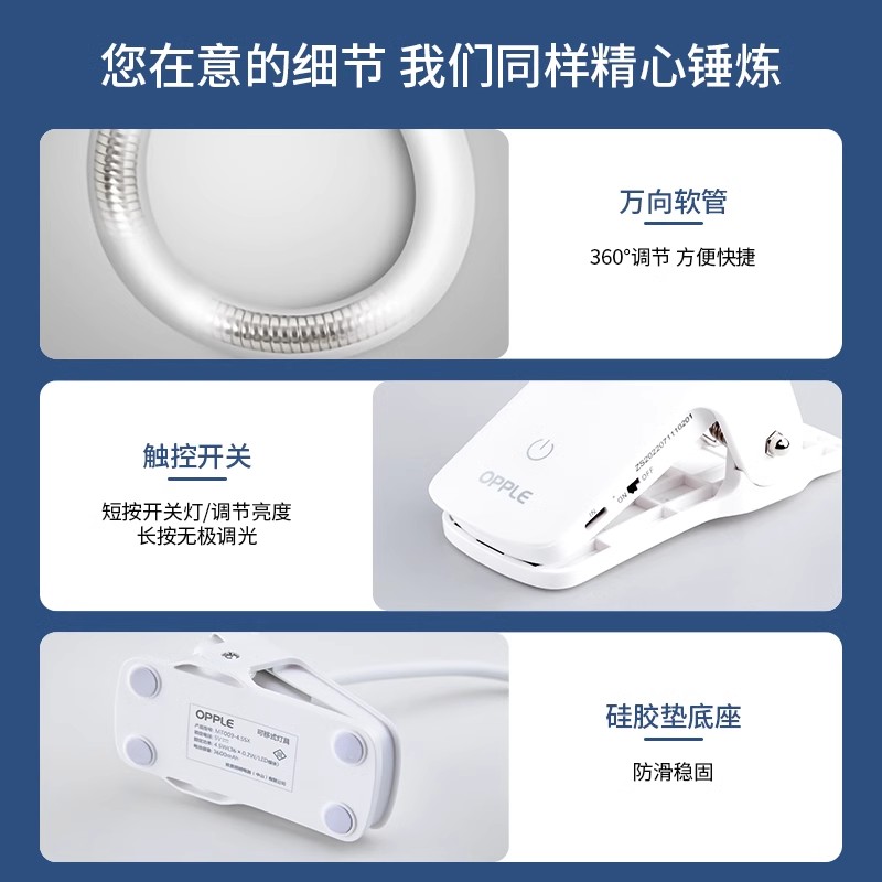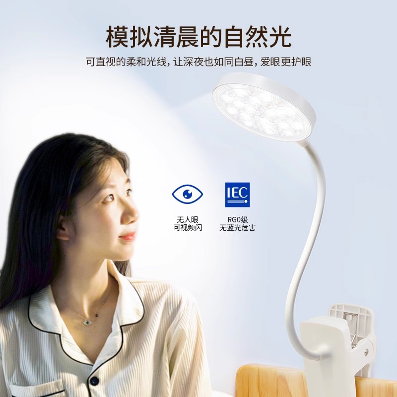 欧普充电国A级小台灯护眼学生卧室床头阅读宿舍夹子夹式 学习专用