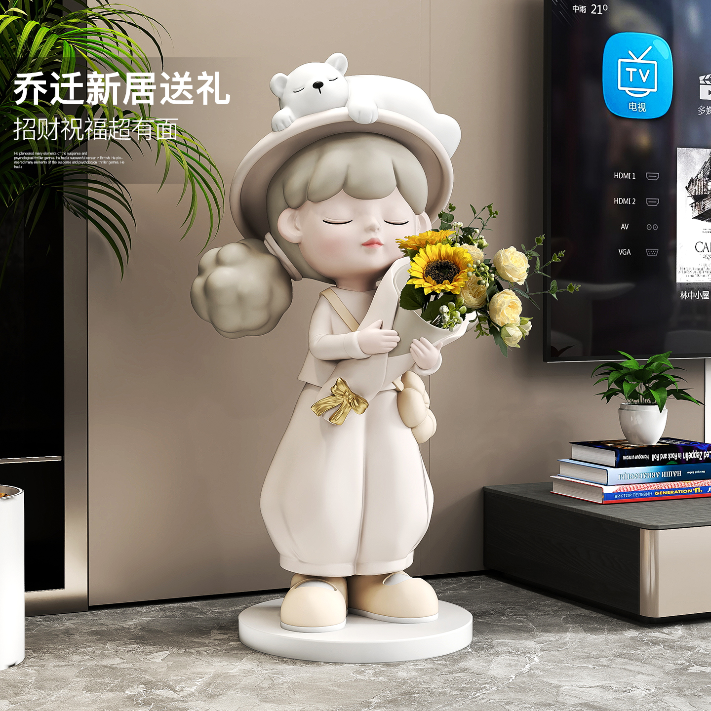 女孩大型落地花瓶摆件家居饰品客厅电视柜沙发旁雕塑开业乔迁礼品