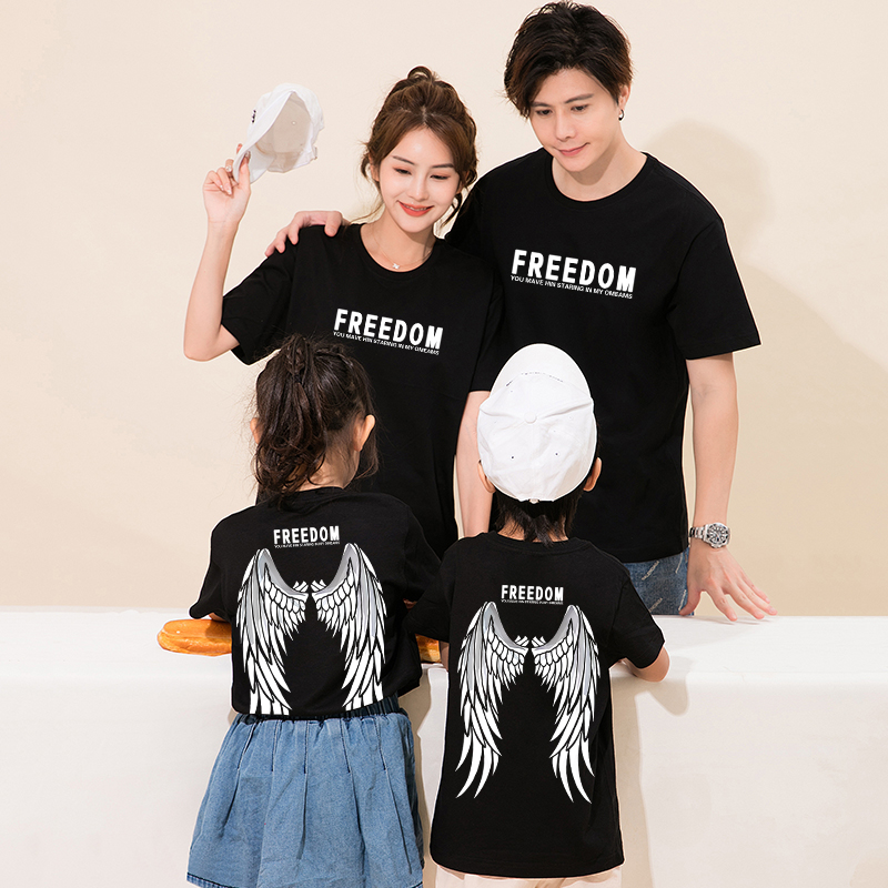 潮翅膀短袖 2025新款 t恤高端一家三口装 母女装 亲子装 母子装 夏装