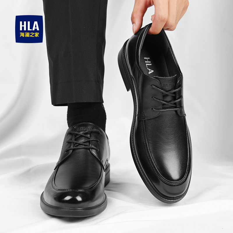 秋季 新款 真皮经典 软底德比鞋 HLA 透气增高商务皮鞋 海澜之家男鞋