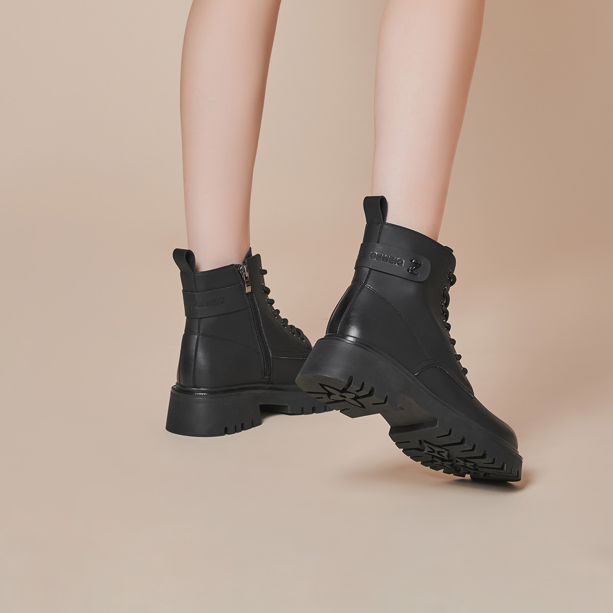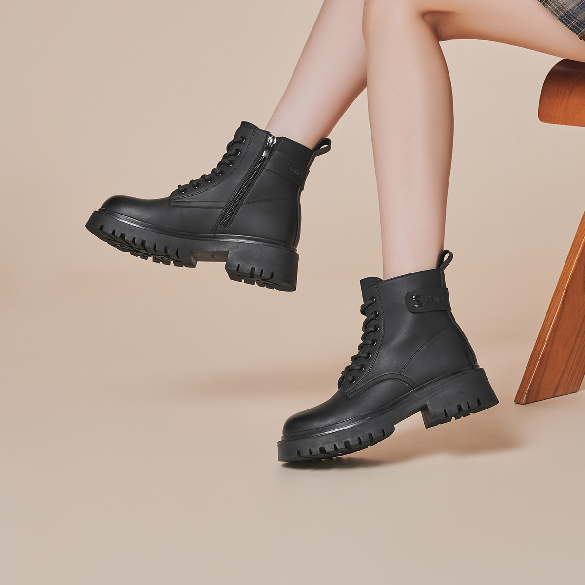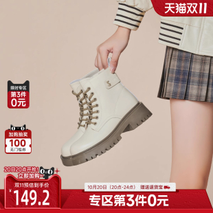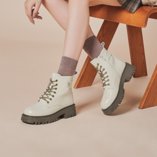 靴女 短靴英伦风厚底软皮靴子时装 戈美其加绒马丁靴女舒适春季 新款
