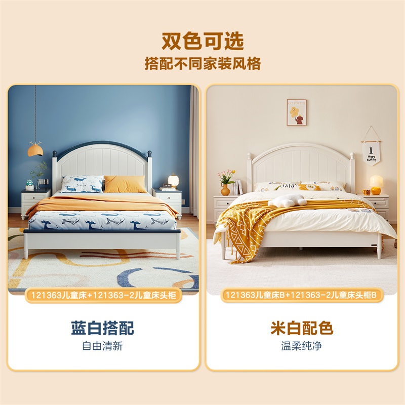 全友家居现代简约奶油风1.2m儿童床男孩女孩1米5实木脚单人小孩床