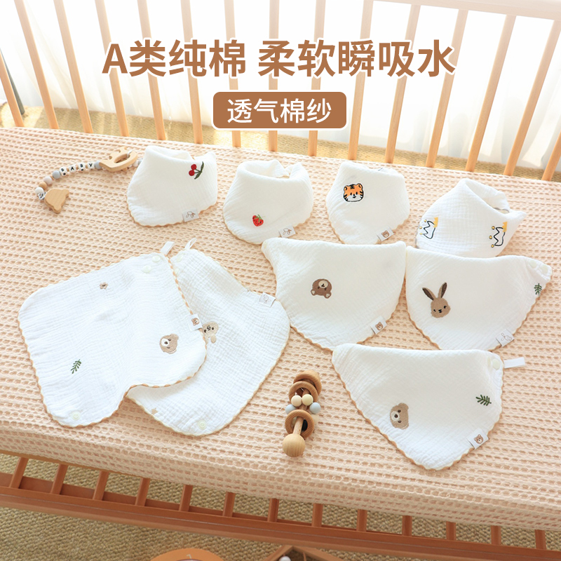 口水巾婴儿夏季 纯棉纱布初生宝宝吃饭围嘴0—6月新生儿童三角巾