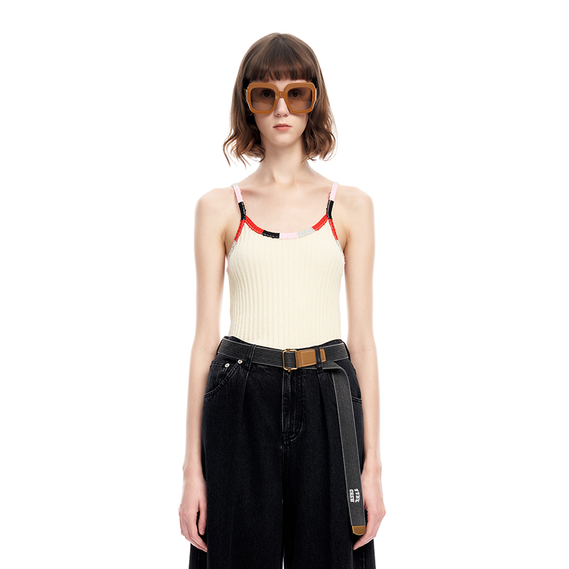 时尚 HM女装 罗纹圆领修身 新款 舒适内搭吊带1257593 背心2025秋季