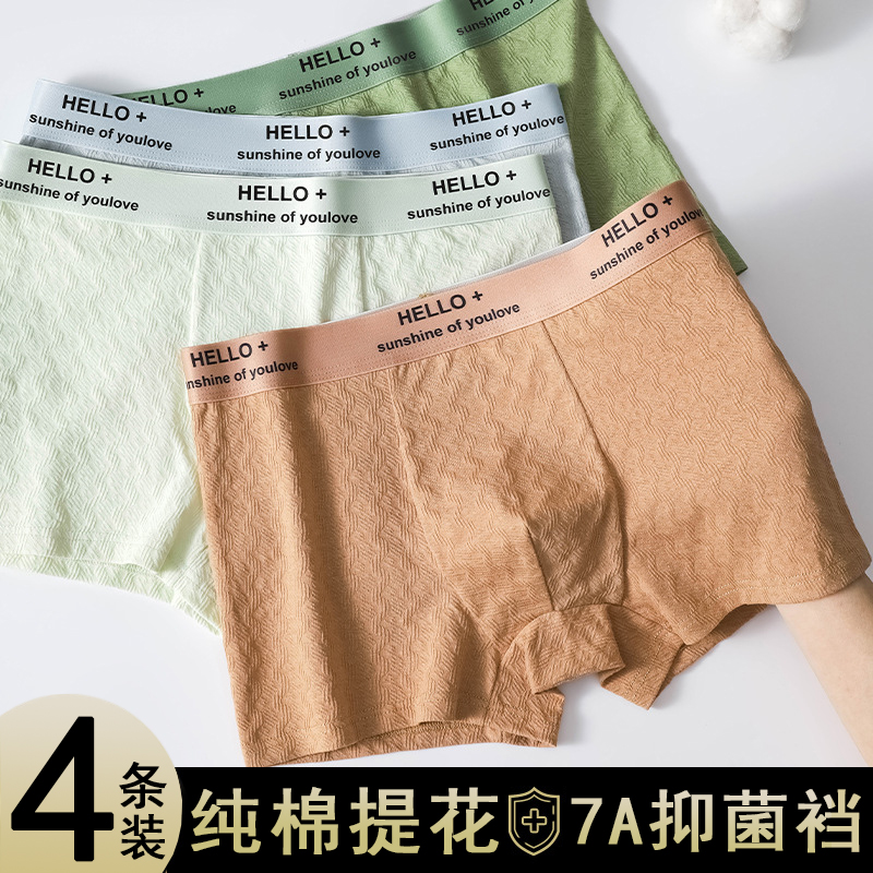 男士 透气抗菌学生四角裤 内裤 平角裤 男95%纯棉7a抑菌中腰大码 新款