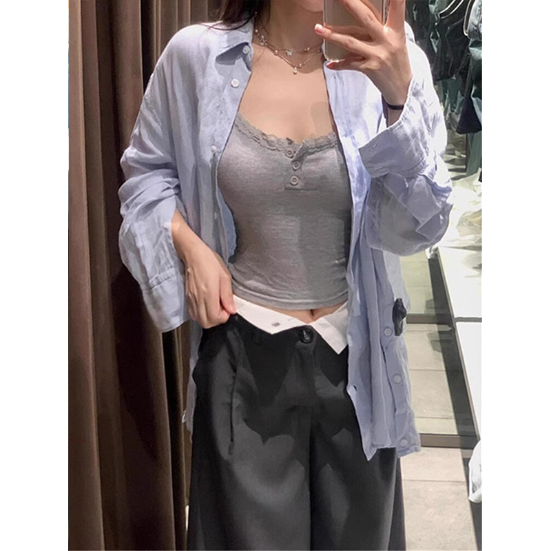 大码 胖mm内搭设计感蕾丝吊带背心女外穿纯欲甜辣高级感带胸垫上衣