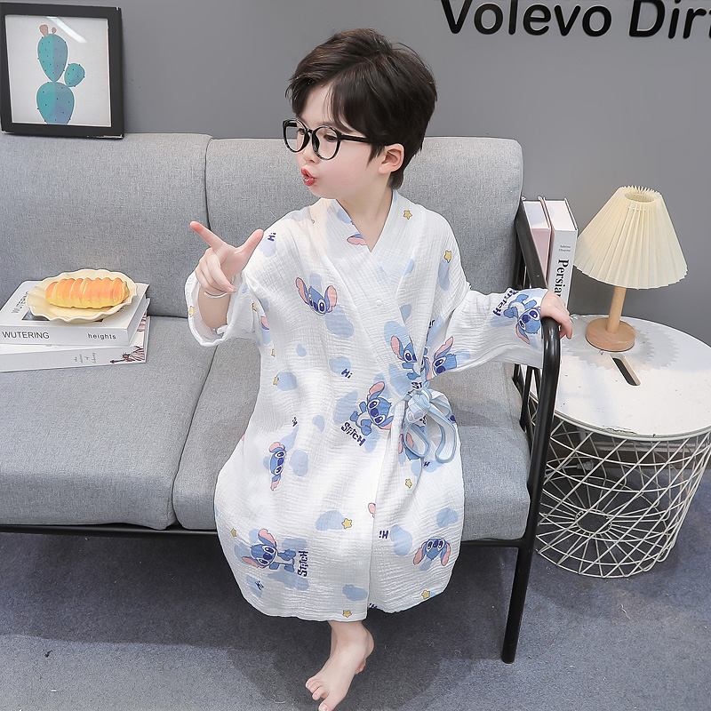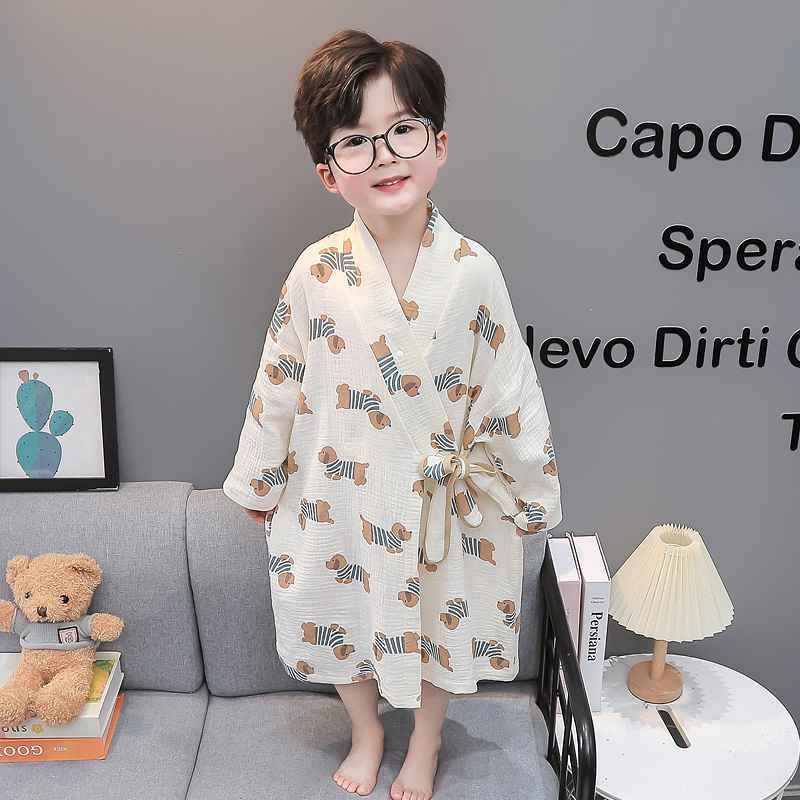 婴儿浴巾春秋纯棉宝宝浴袍长袖 男女童家居服睡袍 儿童纱布睡衣夏季