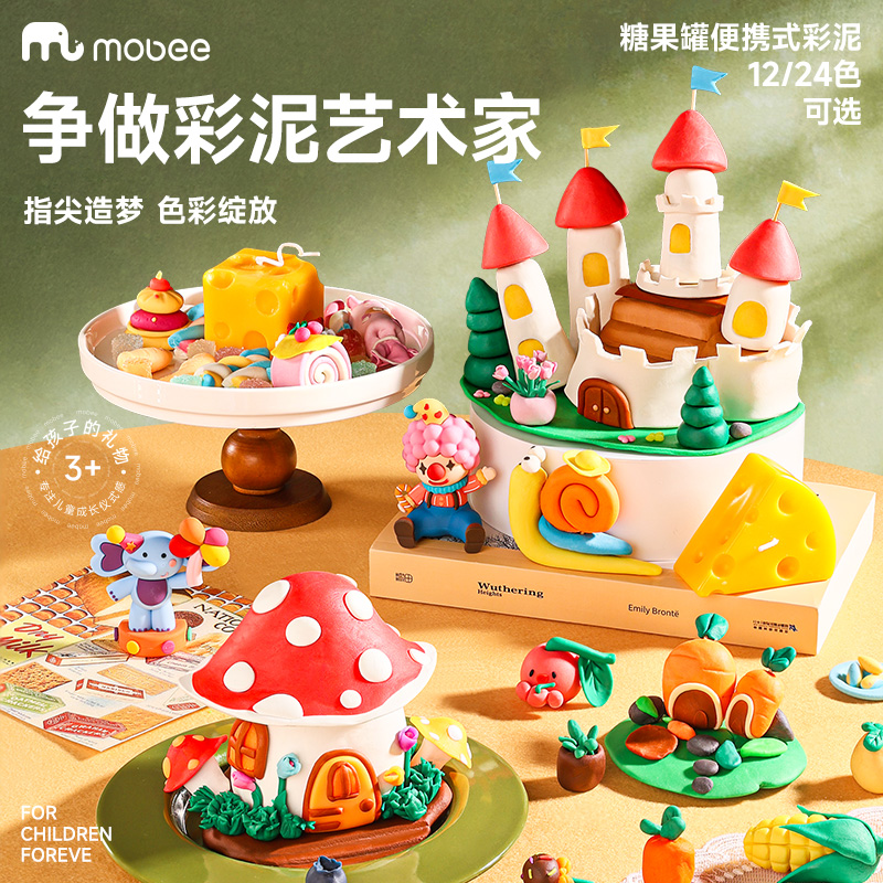 mobee彩泥橡皮泥无毒diy儿童食品级男女孩玩具幼儿园专用超轻黏土