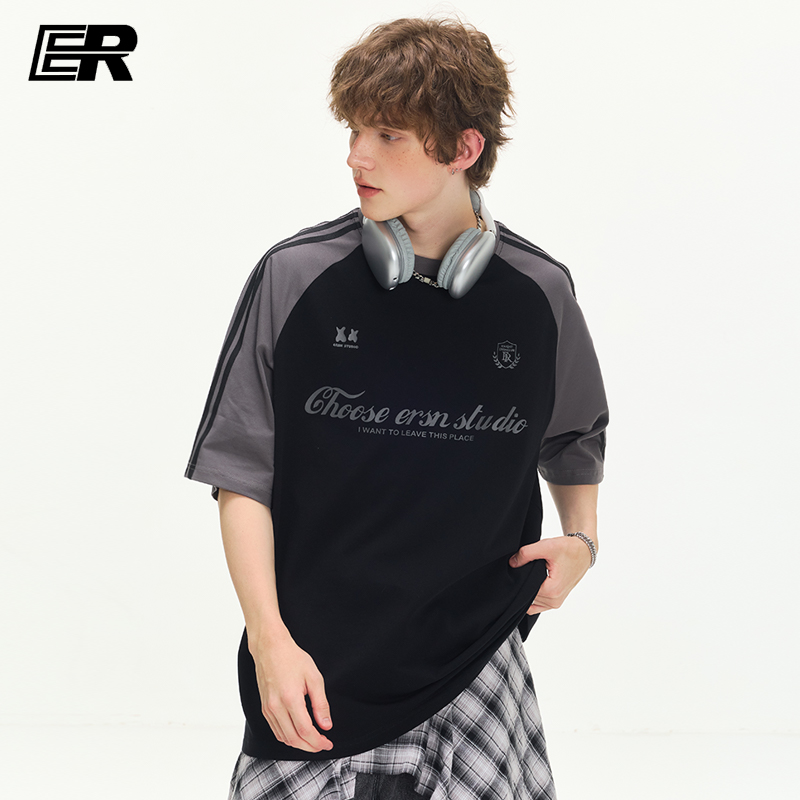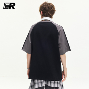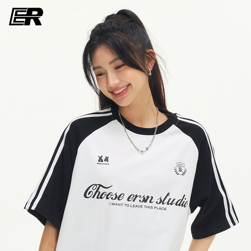 防晒潮牌宽松美式 男2025夏季 ER插肩条纹短袖 休闲T恤女 凉感