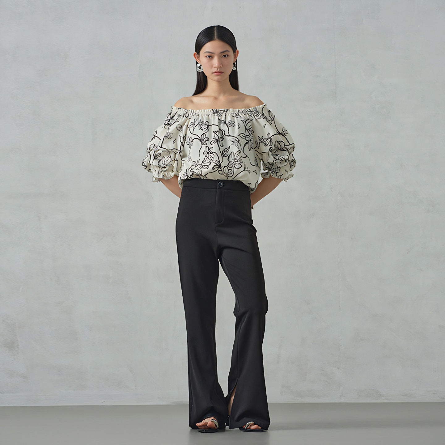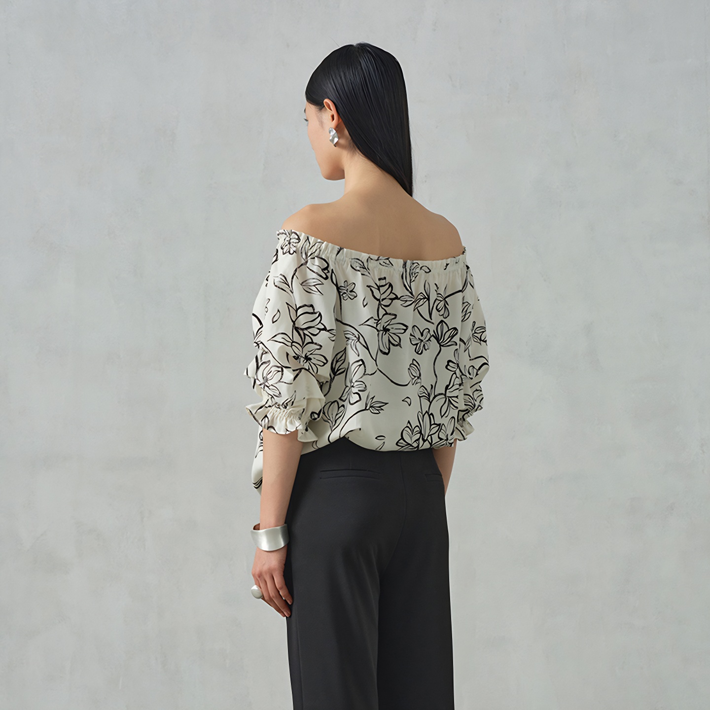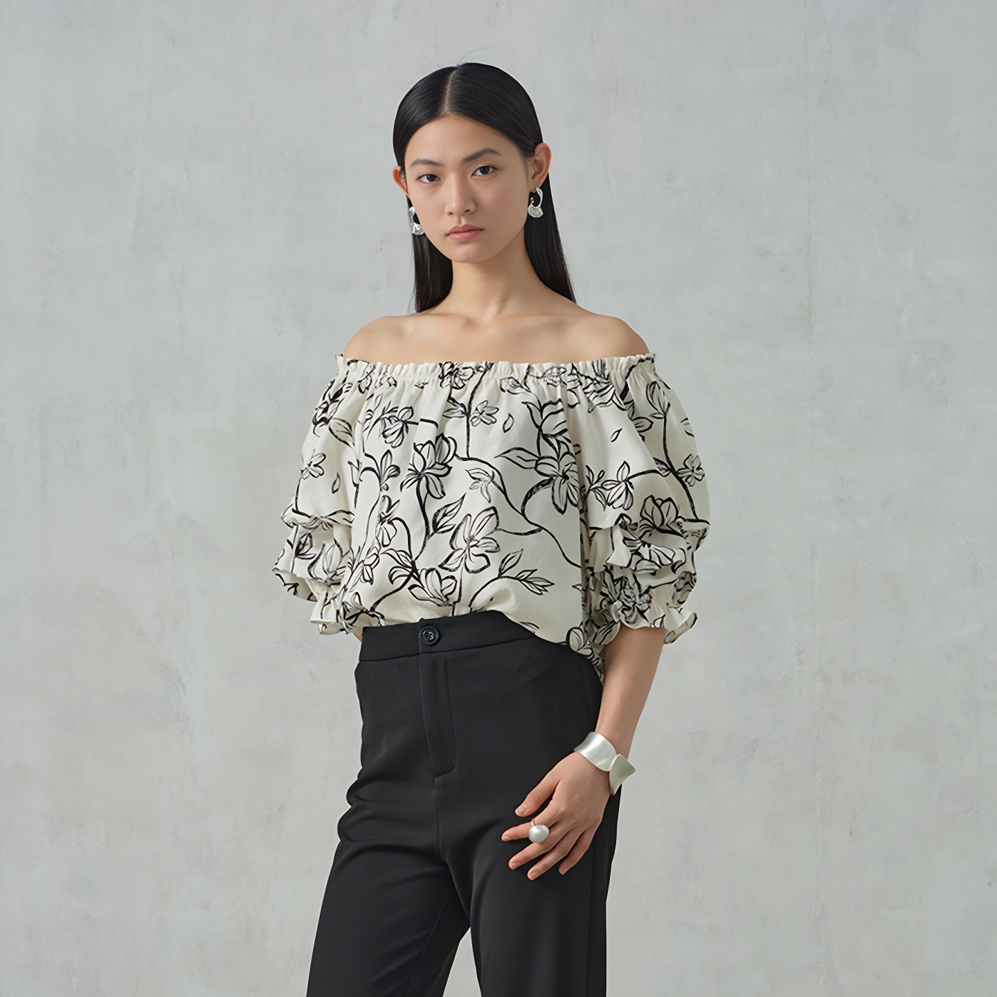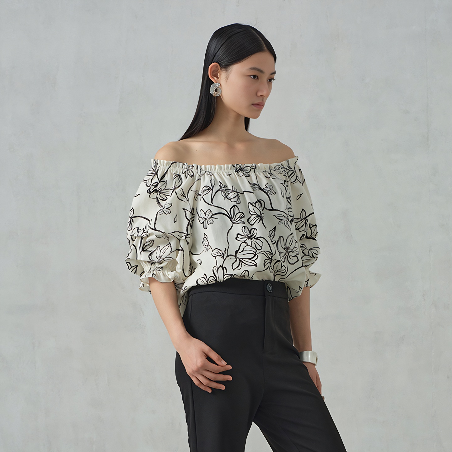 新款 女2025夏季 阿依莲一字肩雪纺衫 设计感气质上衣 商场同款