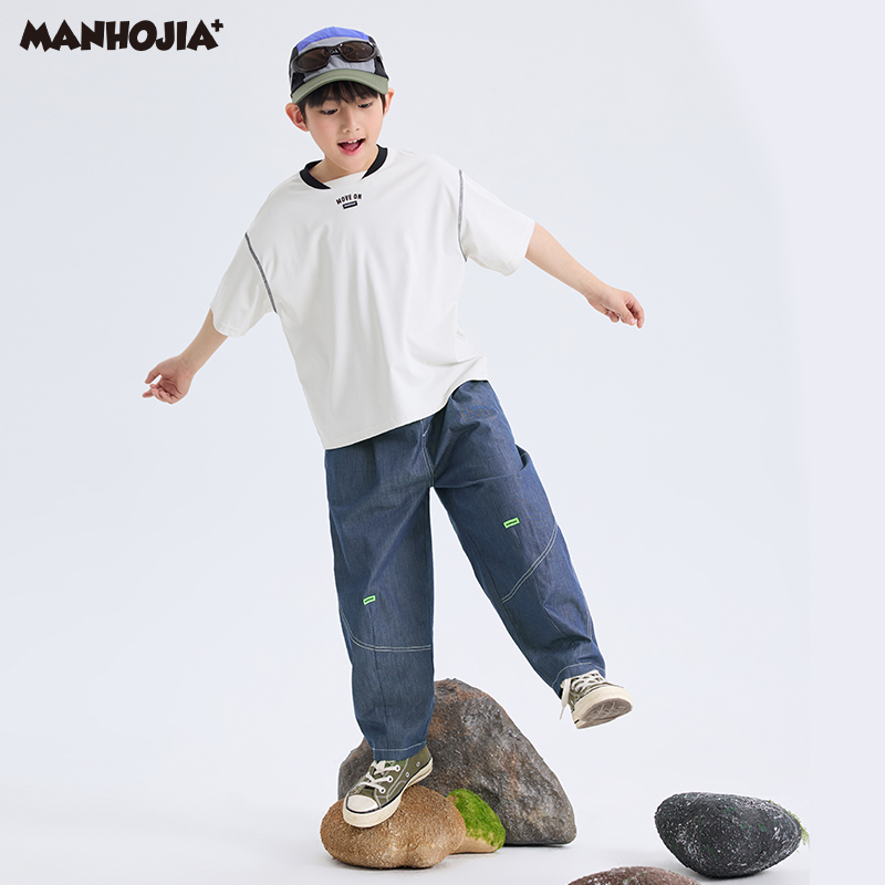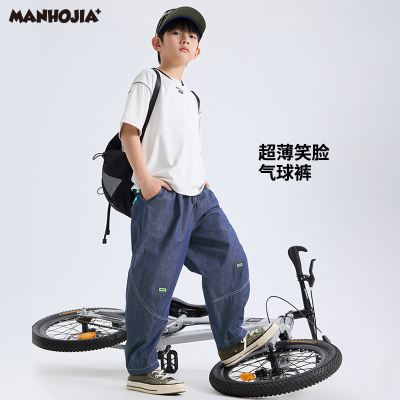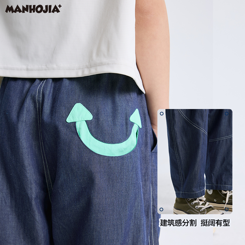 口袋笑脸裤 牛仔长裤 夏季 不褪色牛仔笑脸气球裤 夏 薄款 漫画家