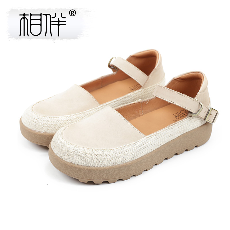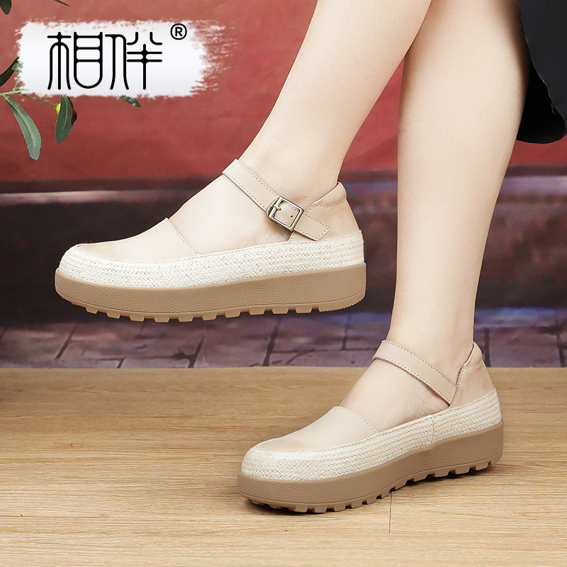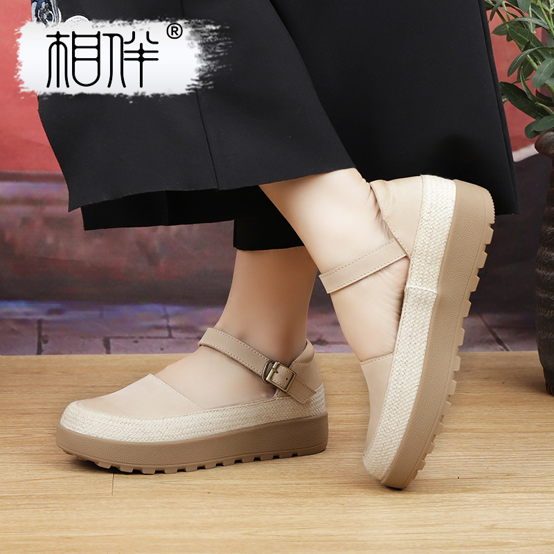 女复古防滑单鞋 厚底松糕鞋 2025新款 相伴真皮平底软底软面舒适女鞋