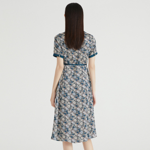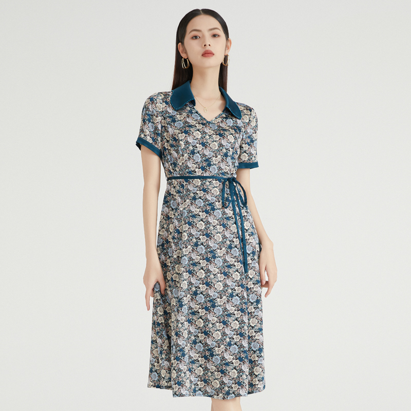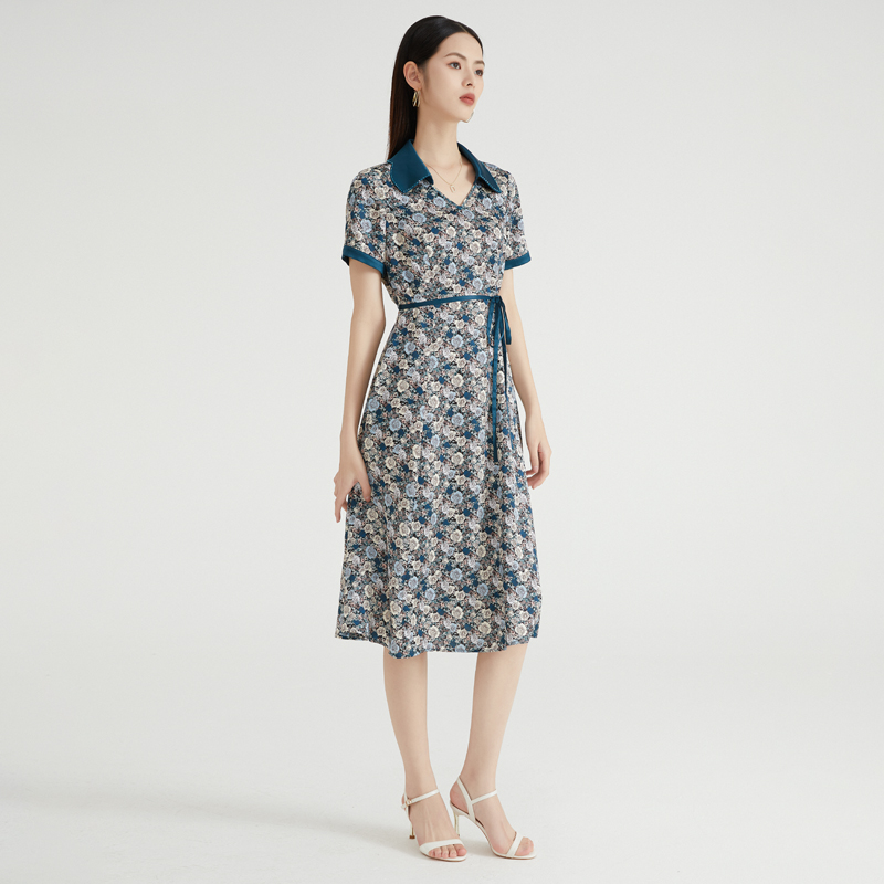 长袖 通勤系带圆领爆款 连身裙 新款 秋水伊人百搭碎花连衣裙2025秋装