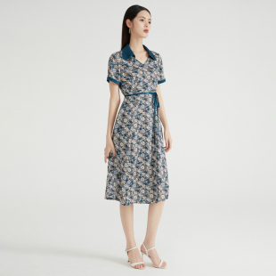 新款 显瘦通勤连衣裙2024年冬季 裙法式 朗姿高级感复古收腰丝绒衬衫