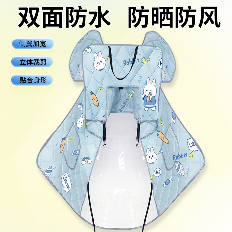电动车挡风被四季 通用亲子儿童双面防水中厚防风罩电瓶车遮阳防晒