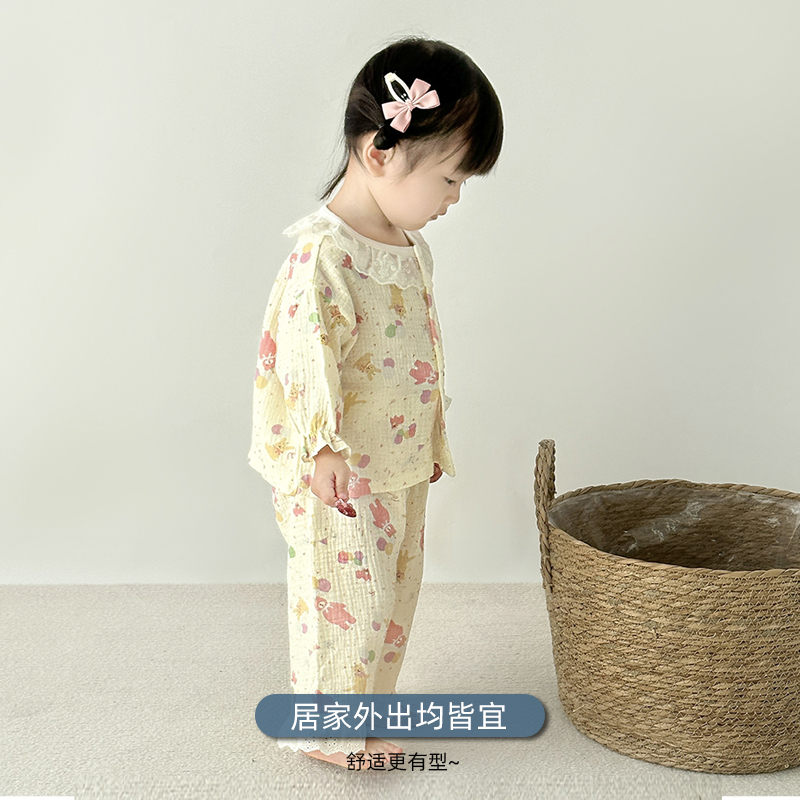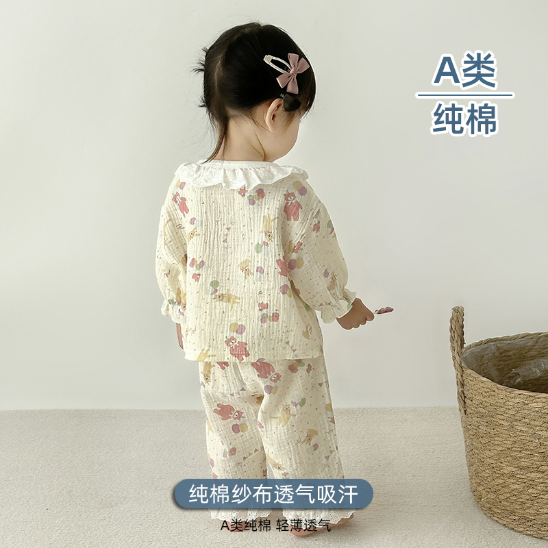 家居服 纯棉纱布空调服婴儿小童亲子分体套装 女宝宝睡衣春夏季 薄款