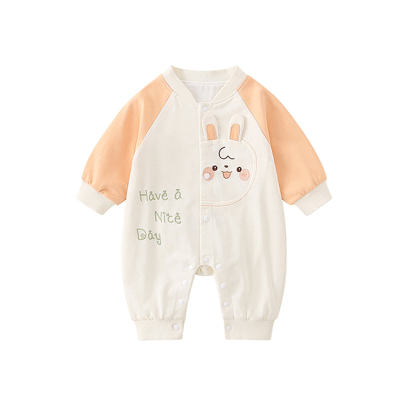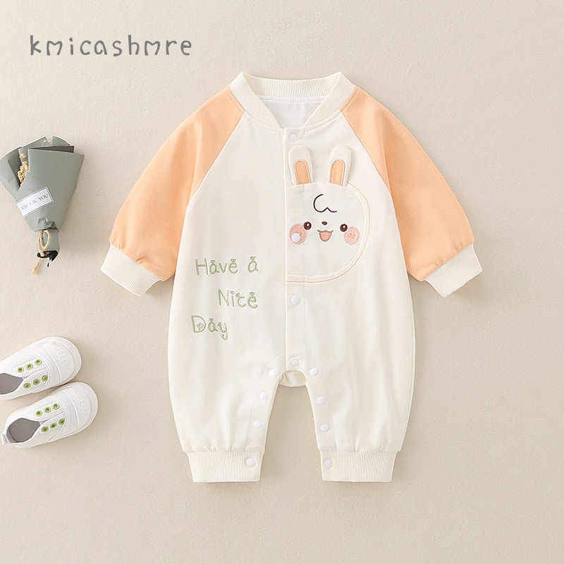 kmi婴儿衣服春季 双层哈衣满月爬服 新生儿连体衣宝宝连体衣长袖