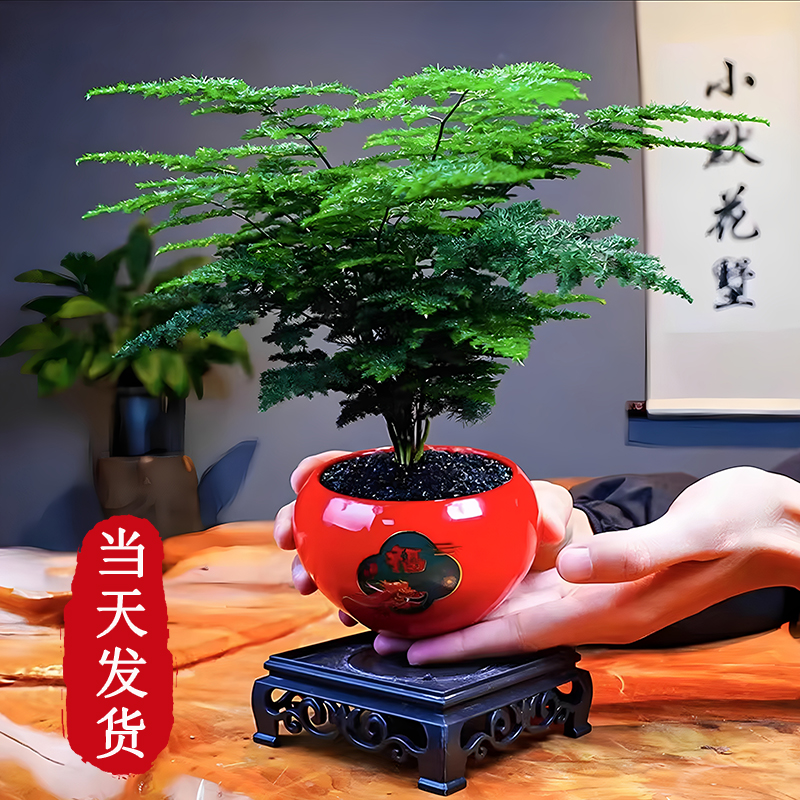 文竹盆栽植物四季 抢两盆 常青室内花卉办公桌植物禅意 9.9元