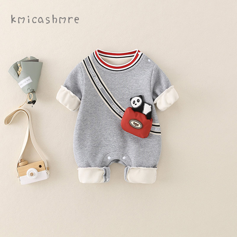 kmi婴儿衣服春装 连体衣男宝宝卫衣春秋爬服新生儿洋气外出服