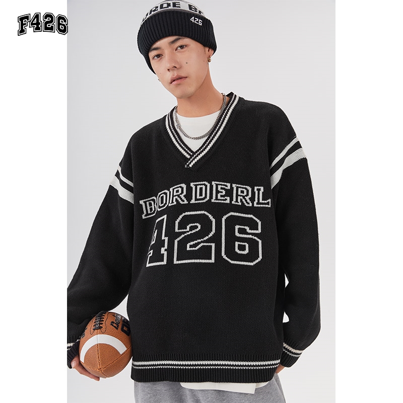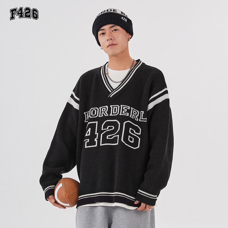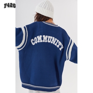 学院风撞色V领麻花毛衣女秋冬宽松慵懒软糯针织衫 上衣 高级感短款