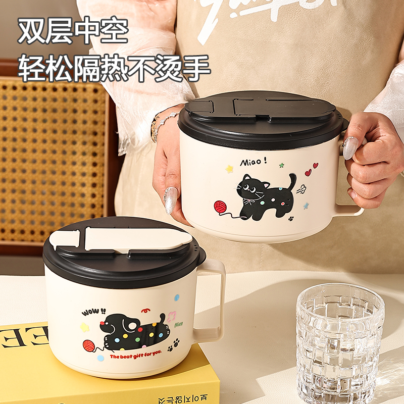 舍里泡面碗带盖宿舍用学生高颜值面碗可微波炉饭碗食堂打饭专用碗