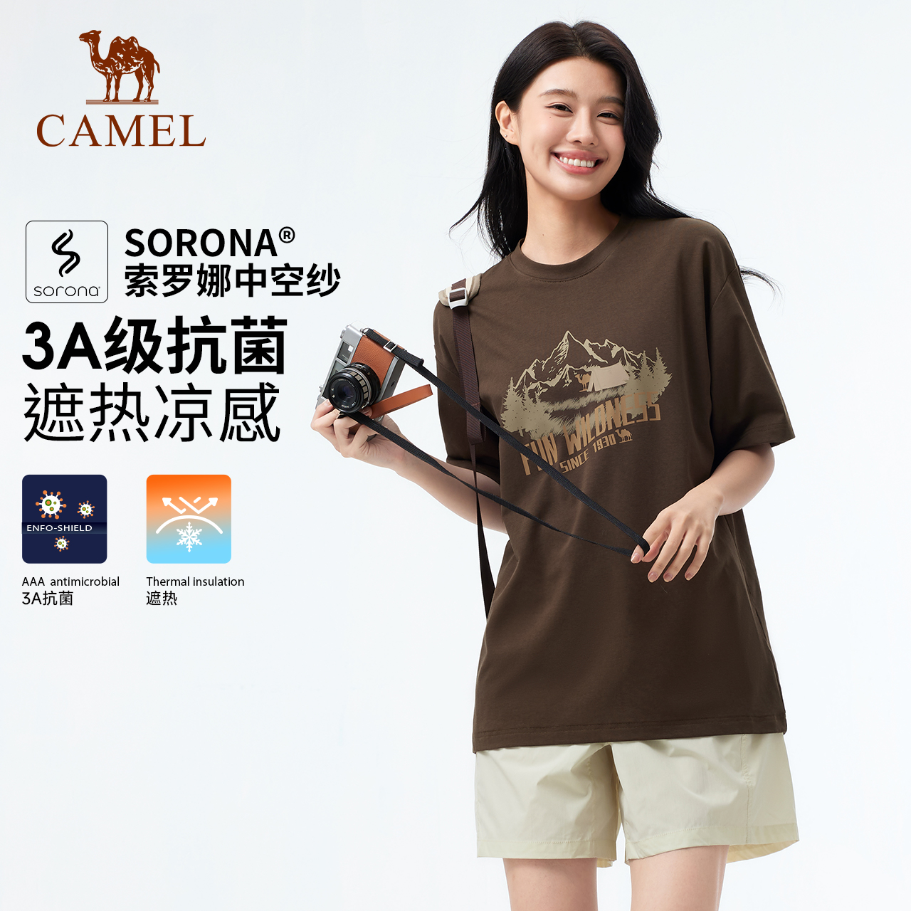 短袖 速干T恤男女同款 骆驼女装 圆领百搭凉感抗菌运动棉t夏 索罗娜