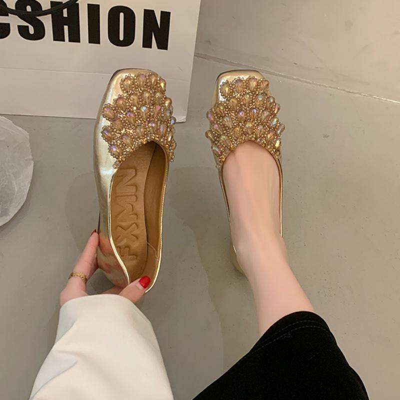 秋季 红色平底鞋 芭蕾法式 浅口婚鞋 达芙妮羊皮单鞋 豆豆鞋 女2025新款