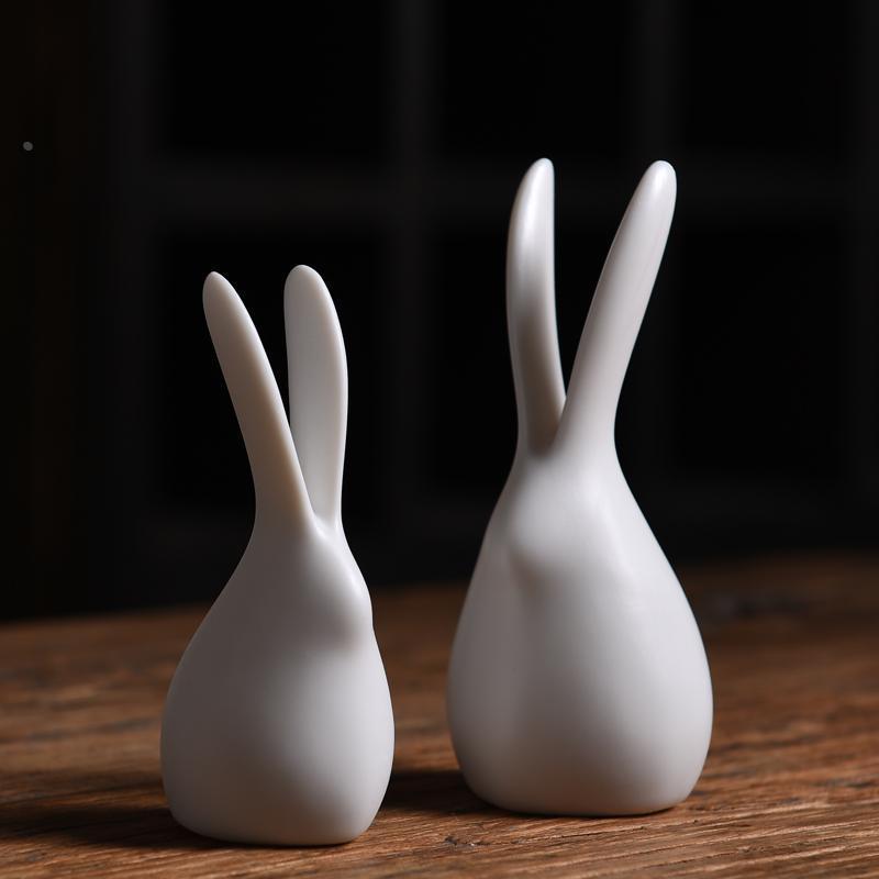 茶宠兔摆件创意家居软装 饰羊脂玉瓷精品可养手工陶瓷生肖兔子定制