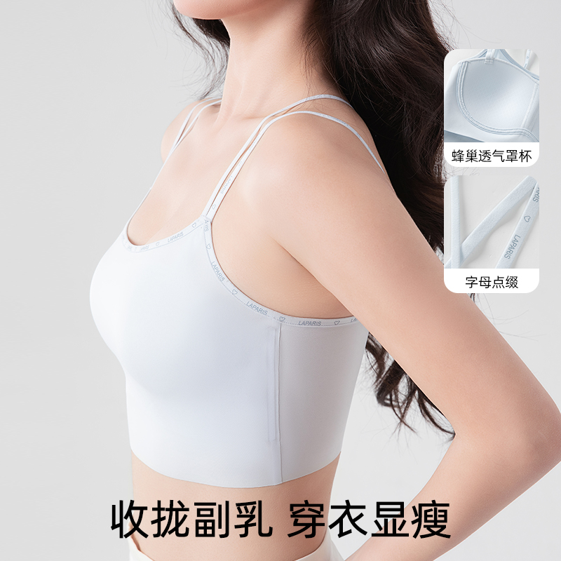 猫人交叉无痕美背内衣女小胸聚拢带胸垫可外穿吊带背心式 文胸罩