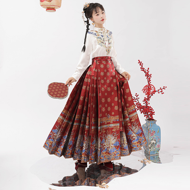 万里织造司原创明制汉服过年马面裙女半身裙敬酒服订婚服秋冬套装
