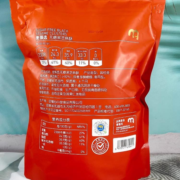 麦德龙代购 休闲零食配料表干净 麦臻选无糖黑芝麻酥500g独立小包装