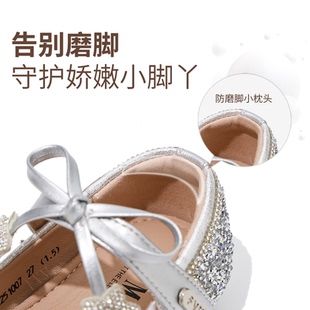 皮鞋 秋冬新款 儿童水晶鞋 水钻鞋 百丽童鞋 小女孩单鞋 女童爱莎公主鞋