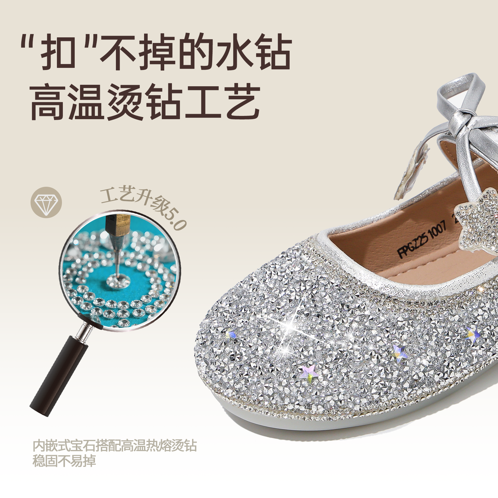 女儿童皮鞋 芭比童鞋 春秋软底水钻小女孩水晶鞋 2025新款 女童公主鞋