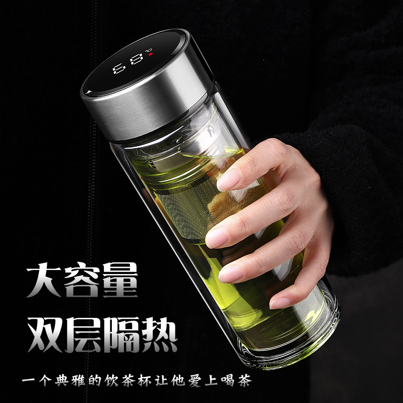 大容量水杯男士 泡茶杯定制 耐高温双层玻璃杯茶水分离杯子2025新款
