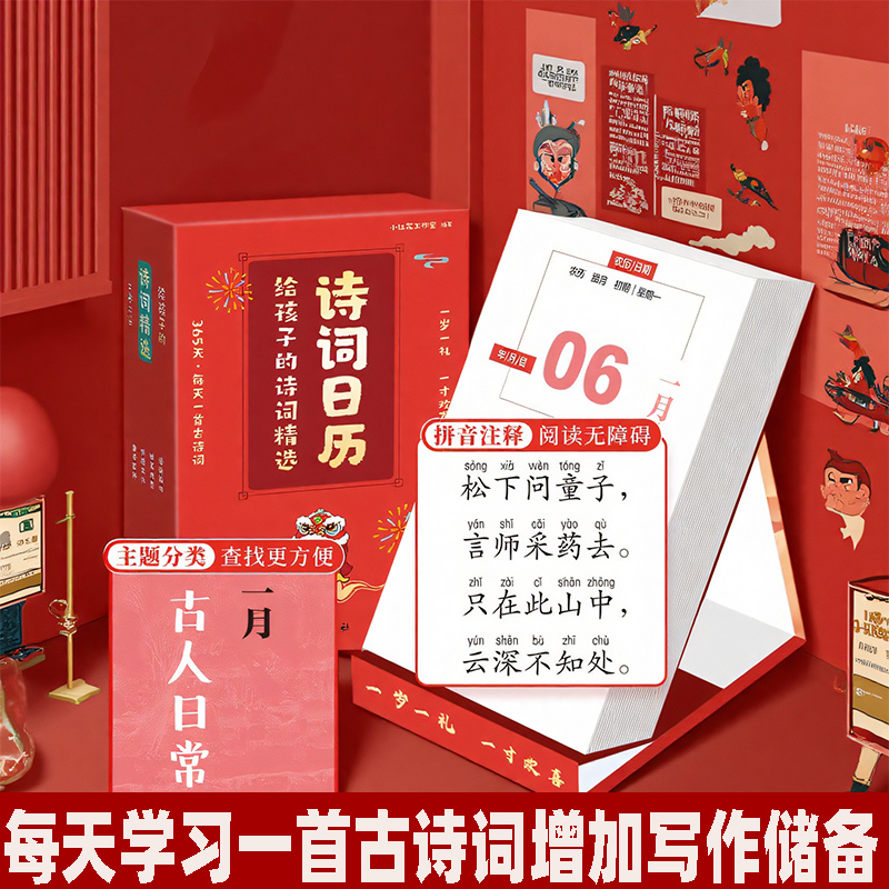 诗词精选诗词日历台历蛇年台历365天每天一首古诗词公历农历节日节唐诗日历抖音同款 诗词日历2025年给孩子 新年贺礼 抖音爆款