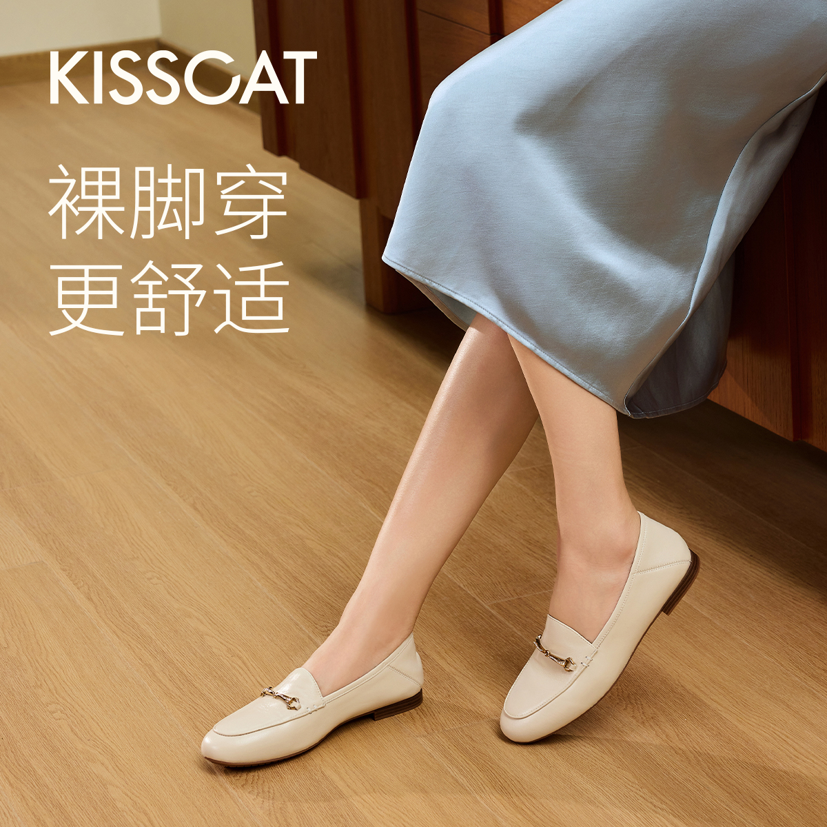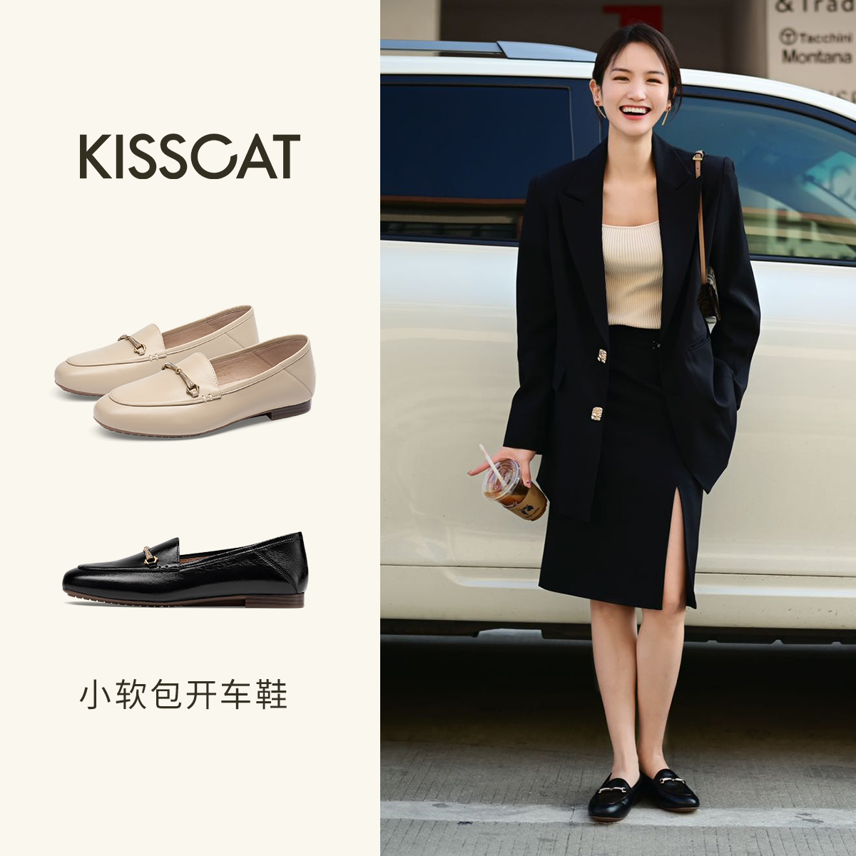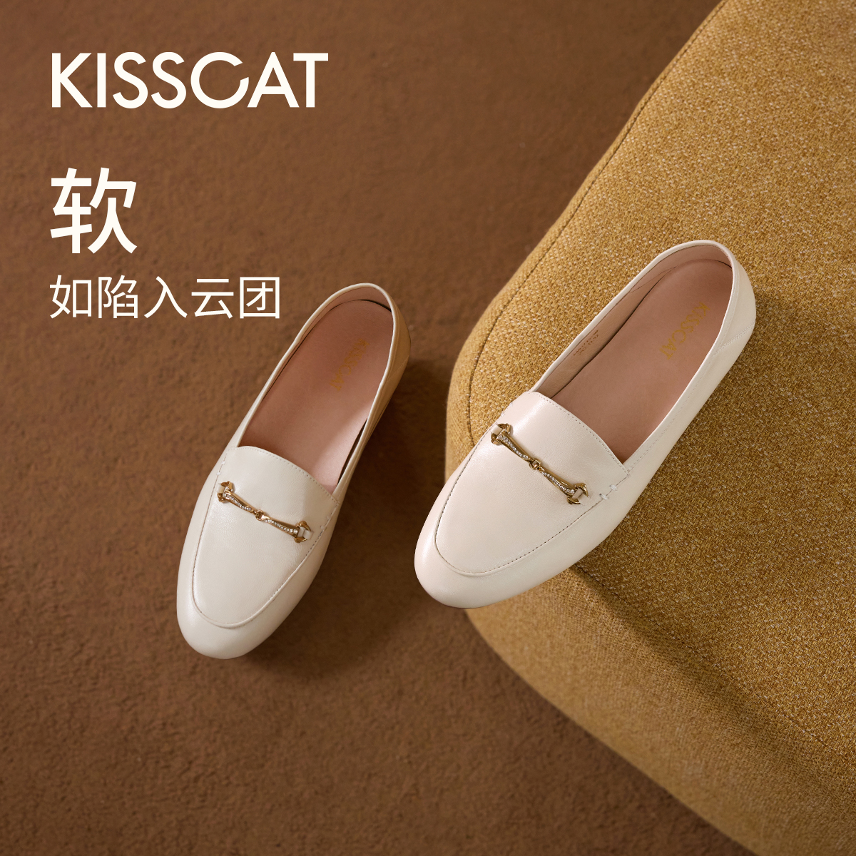 平底乐福鞋 KISSCAT接吻猫 皮鞋 25春舒适一脚蹬单鞋 小软包开车鞋
